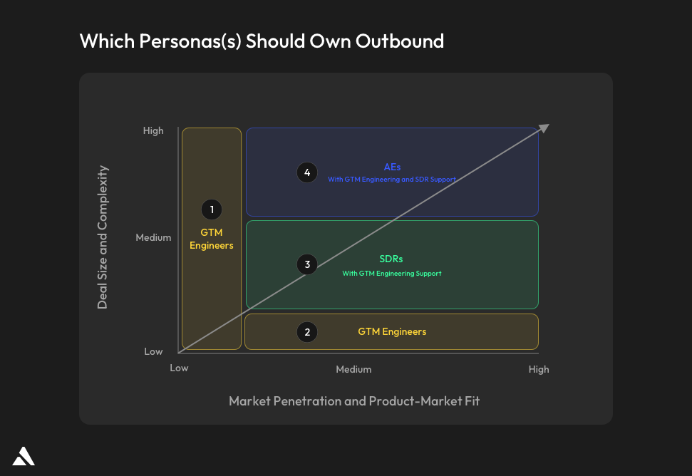 But here’s the key: GTM Engineers shouldn’t disappear. Their role just changes. Instead of owning outbound execution, they shift to building infrastructure and the systems that make each rep 2-3x more effective.